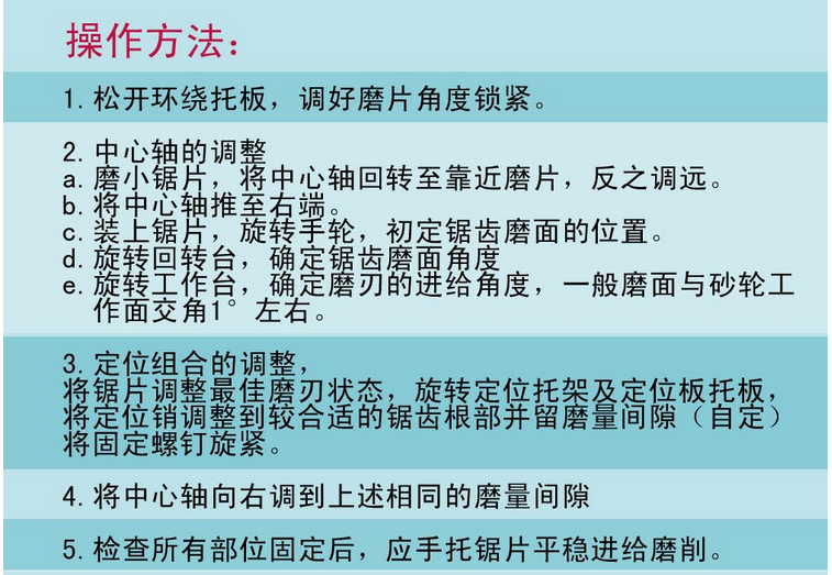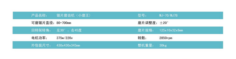 小磨王、锯片磨齿机,号称中国磨齿王,专为硬质合金锯片的磨刃设计的,适应研磨各种超硬质合金锯片,配有可调的环绕型托板,能最大限度托住锯片齿部或其它磨件。可根据锯片直径及齿的大小,调整到最佳位置,滑块可水平回转,能最大限度托住锯片齿部或其它磨件。可根据锯片直径及齿的大小,调整到最佳位置,滑板可水平回转,能保证锯原始的磨刃角度或者将其改变。锯托板上配有加转台,便于调整磨刃的进给角度。回转台配有滑块,心轴,限位螺钉,方便操作,又保证磨刃至中心的半径。磨头配胡±20°旋转机构,能满足斜刃锯齿的研磨。以其轻快、高速度、高精确,赢得市场的认可,它适合于木工家具生产,装饰、装潢、铝合金等等的辅助修磨工具。